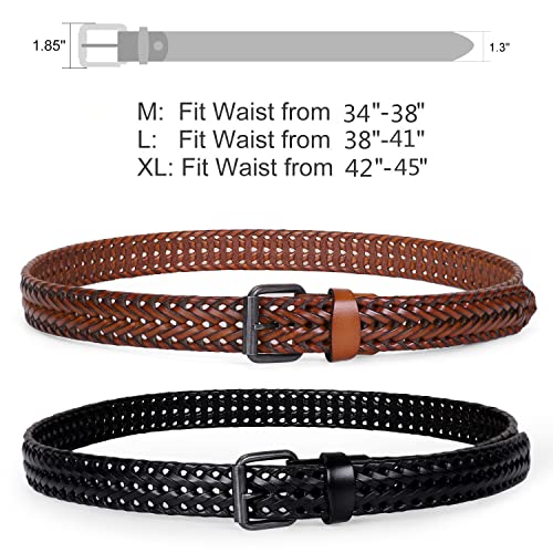 HOT ! WERFORU Men’s Leather Braided Belt, Leather Woven Belt for Jeans 1.3 Inch Wide with Prong Buckle