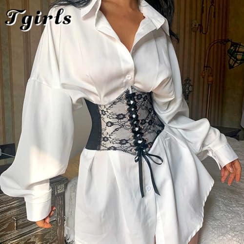 Tgirls Women Corset Belt Lace-up Waist Corset Belts Sexy Cinch Elastic Wide Belt for Dress Costume Waspie Waistband 1