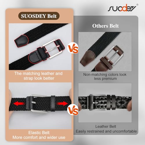 HOT ! SUOSDEY Men Stretch Woven Belt Golf Braided Belt Casual Elastic Belt Web Belt for Jeans Pants