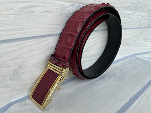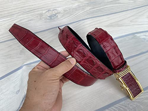 Genuine Crocodile Natural Leather Skin Burgundy Belts Buckle For Men, Real Alligator Original Leather Men's Belt, Width 1.37" 1