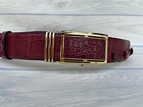 More information about Genuine Crocodile Natural Leather Skin Burgundy Belts Buckle For Men, Real Alligator Original Leather Men's Belt, Width 1.37"