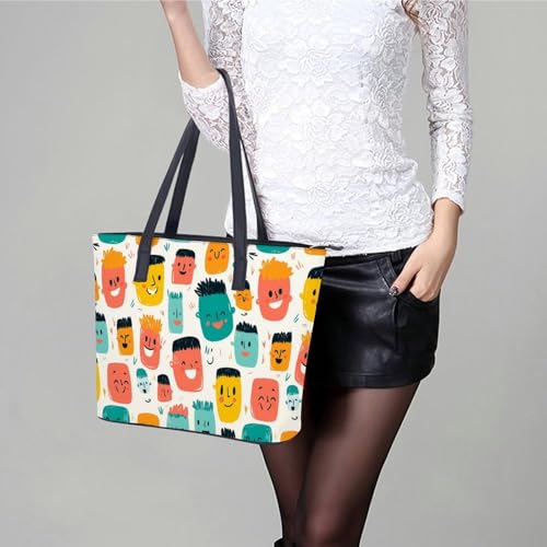 More information about Cartoon Faces Collection Women's Leather Handbag Shoulder Bag Tote Purse Bags for Shopping Travel