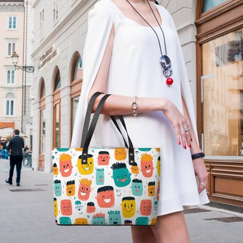 Cartoon Faces Collection Women's Leather Handbag Shoulder Bag Tote Purse Bags for Shopping Travel 1