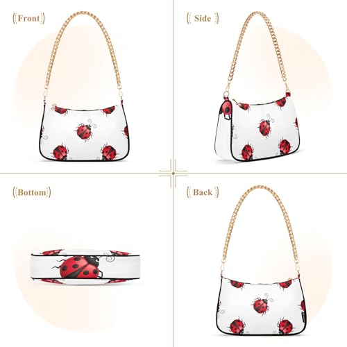 Vivid Red Black Ladybugs White Hobo Party Purse Women Tote Handbag Painting Floral Shoulder Bag Zipper Closure 3