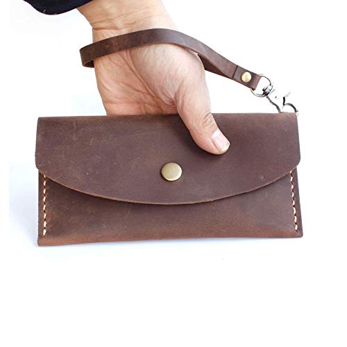 • Handcrafted Leather Wallet: This wallet is meticulously crafted from premium quality, full-grain leather for a luxurious look and feel. Size:​7.4 * 3.7 * 0.3 inch,Wrist strap total length 7.7 inches Leather (Crazy Horse Leather) This cowhide style is retro, the longer the time is, the more beautiful