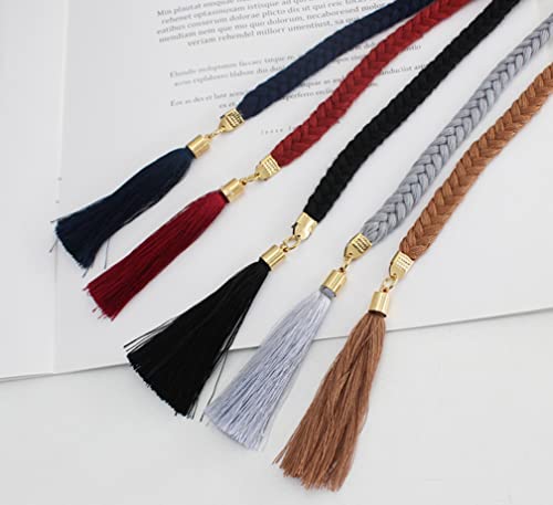 Women Girls Braided Knotted Waist Belt Skinny Mixed Color Rope Exotic Chain Tassel for Dress Skirt 6