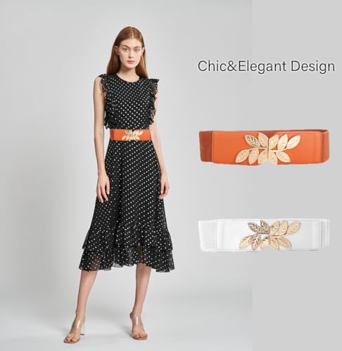 HOT ! Women's Stretchy Elastic Waist Belt for Dresses, Vintage Wide Leaf Print Design