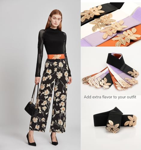 More information about Women's Stretchy Elastic Waist Belt for Dresses, Vintage Wide Leaf Print Design