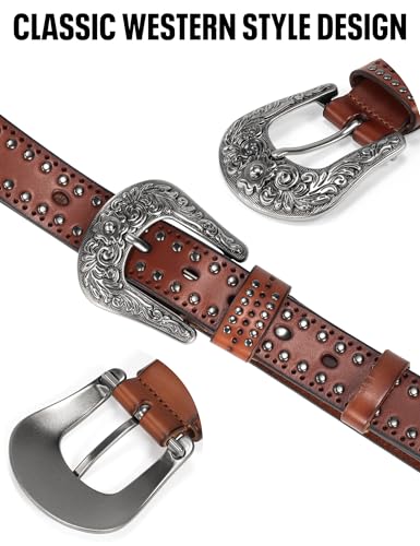 Womens Western Leather Belts 35mm Studded Belt with Vintage Silver Buckle 3