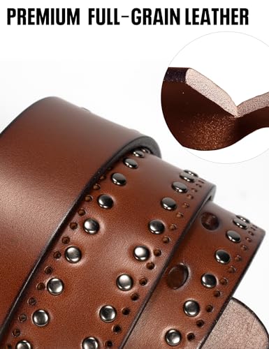 • Unique Stud and Perforation Design: The belt is adorned with silver studs and perforations, adding a touch of edgy biker style while improving breathability and comfort for all-day wear
