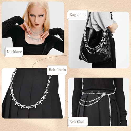 • Package Includes: Package comes with 6 pieces of punk jeans chain in different length, including 1 piece waist chain in a single layer, 3 piece chain belt in double layers and 2 different styles of 3-layer trouser chains. Perfect to used on wallet, pants, janes, skirt, belts, and keychain for men women