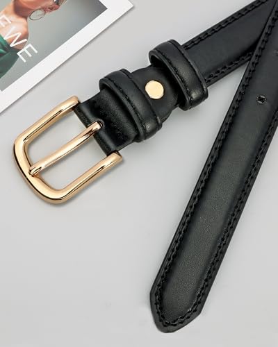 Fashion Trendy Leather Belts for Women, Skinny Belt Women with Gold Buckle Width2cm 6
