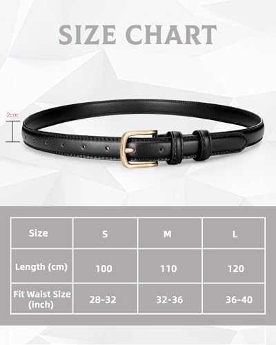 • Trend Designer Belts for Women: Elevate your wardrobe with this womens fashion essential - a 2cm skinny leather belt featuring a luxe gold buckle. Perfectly pairs with designer dresses and business suits, effortlessly transitioning from office wear to evening events