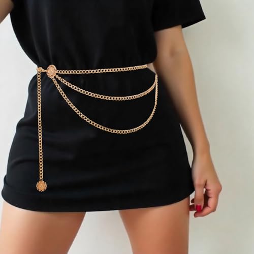 More information about Multilayer Metal Waist Chain, Adjustable Gold Chain Belts Gold Chains Belt for Women for Dresses Jeans Trousers