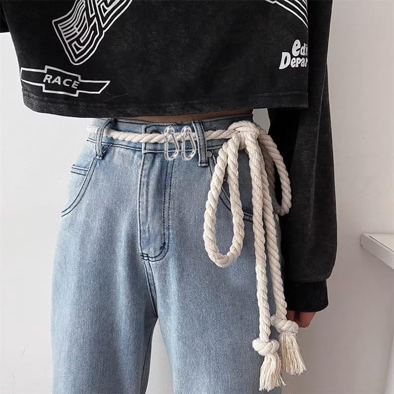 • ✦ Extra-Long & Customizable Length – Measuring 98 inches (250 cm) long, this braided rope belt can be easily cut and knotted to your desired length, offering complete versatility for different styling needs. Perfect as a waist belt, crossbody chain, or creative DIY fashion accessory.