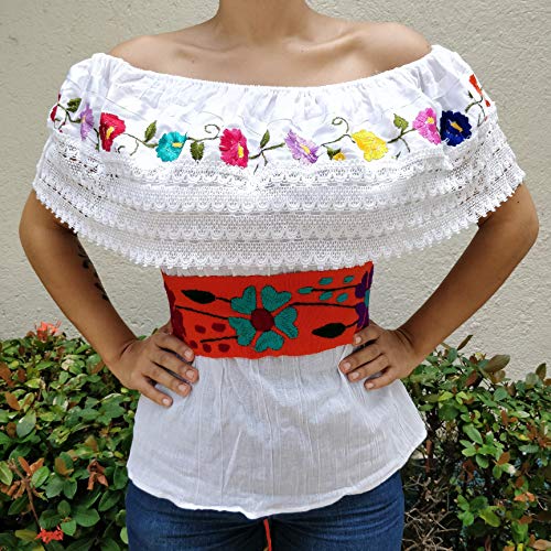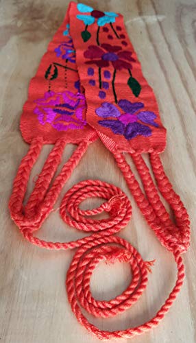 More information about Mexican Embroidery Belt Sash 28 Inches & 22 Inches String Beautiful Floral Design Traditional Fiesta Party (Orange, 1)