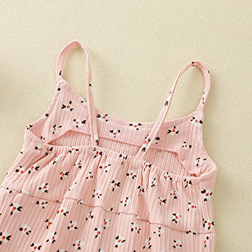 Pudcoco Toddler Baby Little Girls Halter Straps Floral Bell Bottom Jumpsuit Ribbed Flare Romper Summer Outfit 7