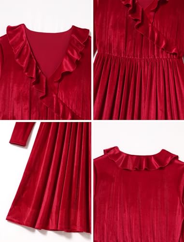 AWIBMK Mommy and Me Dresses V Neck Solid Color Velvet Ruffle Christmas Dress Long Sleeve Xmas Party Family Matching Outfits 5