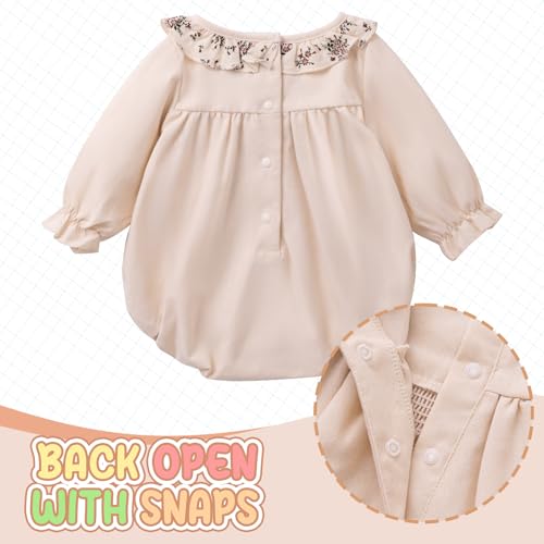 • ~【Smocked Baby Girl Clothes Material】Spring baby girl romper make of high-quality cotton linen fabric materials. Cotton fabric on lower body and trims, super soft comfortable and breathable.