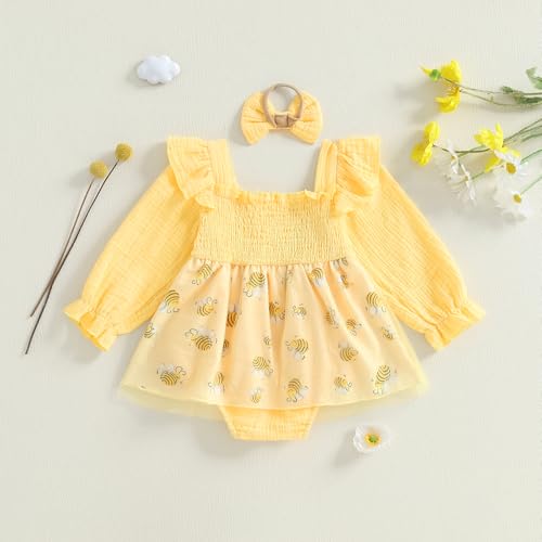 • MATERIAL: Our baby girls romper dress are made of 95% cotton and 5% polyester, soft, skin-friendly, durable and not easy to deform, good breathability, and comfortable to wear