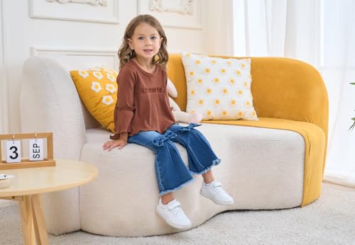 Willow Dance Toddler Baby Girls Outfits Long Sleeve Ruffled Shirt Top Flare Denim Jeans Cute 2Pcs Fall Winter Clothes 7