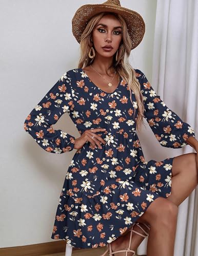 HOTOUCH Womens Casual A Line Dress V Neck Tiered Long Sleeve Fit Swing Dress with Pockets Loose Ruffled Dresses 1