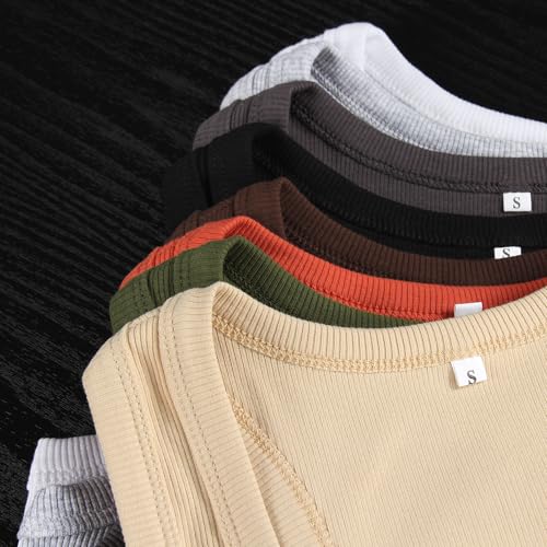 GEMBERA Women Sleeveless Scoop Neck Racerback Ribbed Knit Fitted Teen Basic Crop Tank Top Shirt 6