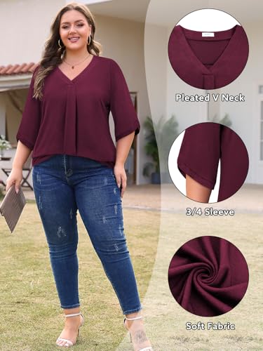 • 3/4 Sleeve Plus Size Tunic Womens Tops: Classic V neck Siddhe plus size tops for women, women's plus tops with long enough flowy hem to hide belly and hips, stretchy plus size solid shirts for women perfect for oversized ladies or as casual clothes