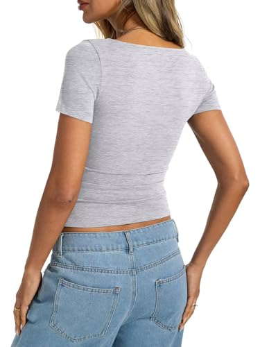 • Feature: Fitted boat neckline shirt, 92% cotton fabric, short sleeve shirts, slim fit t shirts, solid color, hip-length but also fold it up like a crop top, casual y2k style fashion