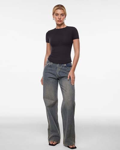 HOT ! INLYRIC Women's Inbarely Ultra Short Sleeve Tops Crew Neck Double Lined Going Out Slim Fit T Shirts Summer Basic Tees