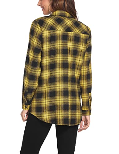 HOTOUCH Women's Long Roll Up Sleeve Cotton Flannels Plaid Shirts Classic Fit Button Down Shirt Blouses with Pockets 6