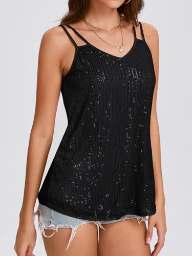 HOT ! Sequin Tops for Women V Neck Dressy Tank Tops Sparkly Party Club Night Disco Concert Outfits S-XXL