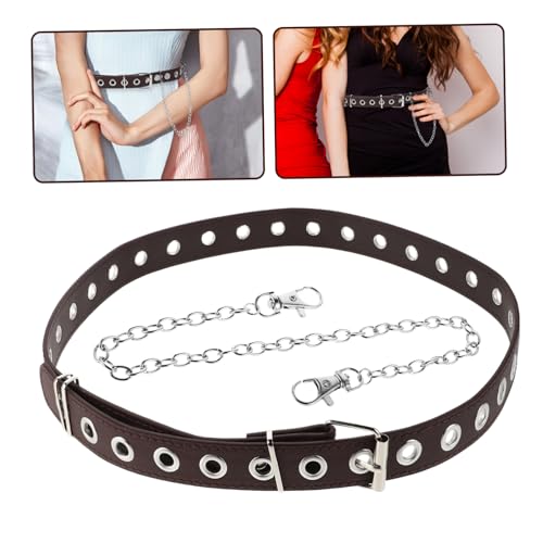 HOT ! Fashionable Brown Punk Waist Belt with Chain and Eyelet Design Adjustable Full Unisex Belt for Men and Women for Casual Wear and Statement Style