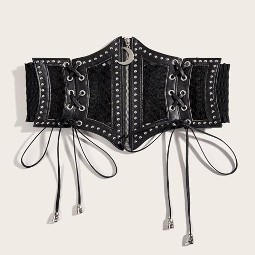 Wide Waist Belt Punk Lattice Chain For Cowgirl Costume Lace-up Trendy Underbust Waist Chain Belt Moon Pendant 1