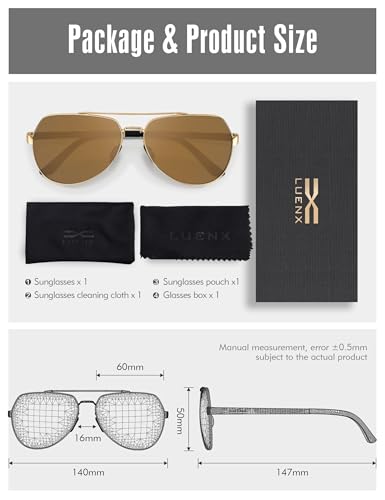 More information about LUENX Aviator Sunglasses for Men Women Polarized New Shades Large Metal Frame - UV 400 Protection