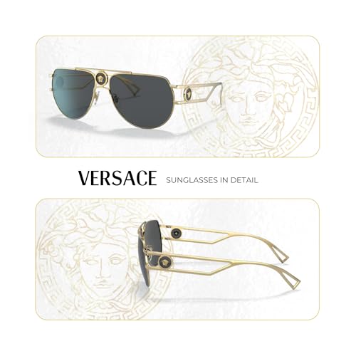 • Introducing the Versace VE2225: The Versace VE2225 embodies luxury and bold sophistication. Featuring an aviator-style design with a sleek pilot shape, these sunglasses for men showcase a striking double bridge and the iconic Medusa logo on the temples. Offering full UV protection, this high-fashion accessory combines impeccable style with everyday function. Color code: 100287.