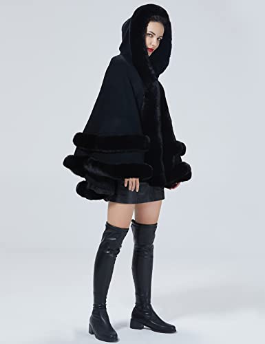 Women Hooded Poncho Cape Faux Fur Shawl Wrap with Fur Trim Sleeveless Cardigan Dressy Cloak Fashion Tops Coat 6