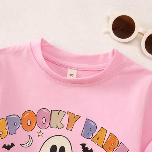 Halloween Shirt Toddler Girl Cute Ghost T-Shirt Spooky Babe Graphic Tee Funny Floral Bats Print Short Sleeve Tops 7
