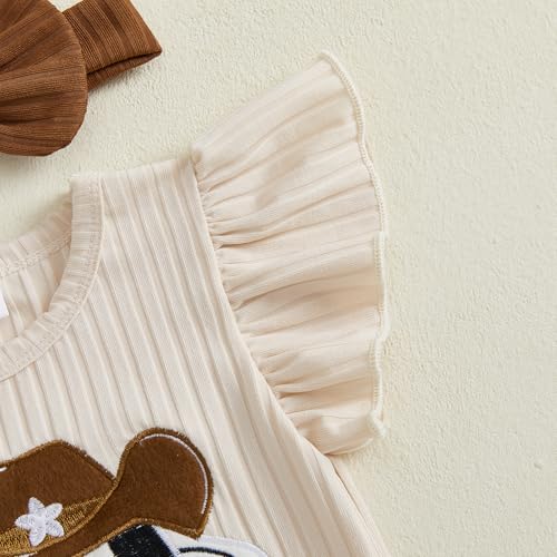 Baby Girl Western Clothes Cute Cow Print Short/Long Sleeve Ruffle Romper Flare Pants Headband Cowgirl Outfit 6