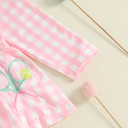 Baby Girl Tennis Romper Dress Long Sleeve Bubble Romper Plaid A Line Polo Skirt Bodysuit Dress Athletic Fall Outfit 6