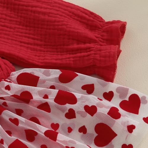 • Design:Baby girl valentines day outfit,baby girl smocked bubble romper,red linen jumpsuit with heart print tutu skirt,square neck,ruffle cuff,puff long sleeve onesie,tulle romper dress,baby girl skirted bodysuit,little girl valentine party dress,matching with bowknot headband,makes your little princess more attractive and charming.