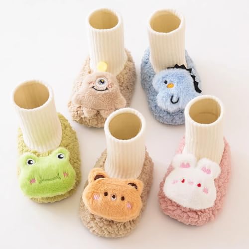 Cute Warm Crawler Booties for Baby Toddlers 6 Months - 1/2/3/4 Years, Thick Anti-Slip Plush Cartoon Winter Baby Socks 5