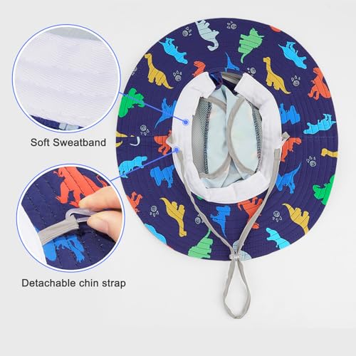 • Wide & Stiff Brim: The brim of the toddler summer hat is 2.4 inch wide, keeps baby covered all-day, offer sun protection for head, neck, and eyes, waterproof and stiff brim won't flop down easily, lightweight and keep its shape for a long time
