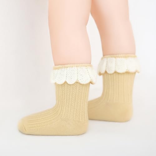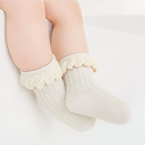 5 Pairs Baby Toddler Girls Princess Frilly Socks, Summer Ruffle Soft Cotton Thin Mesh Socks for Dress, 0~5T 6