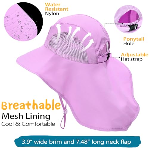 Rosoz Kids Sun Hat with Neck Flap UV Protection Summer Toddler Beach Hat Unisex Ponytail Hat Wide Brim Fishing Hat 5