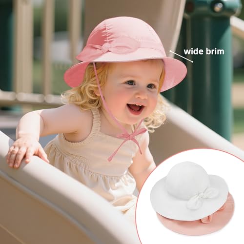 2 Pack Baby Sun Hat Newborn Sun Hat UPF 50+ Sun Protection Infant Sun Hat Wide Brim Baby Girl Cute Beach Hats for Baby 4