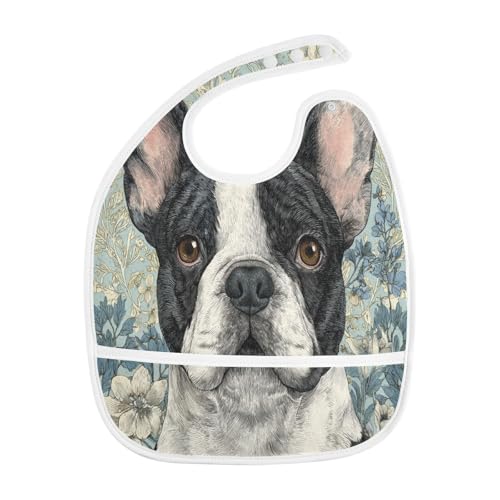 MCHIVER Flower Blue Dog Baby Bibs for Boy Girl Toddler Waterproof Feeding Bib Apron with Food Cather Adjustable Cotton Food Eating Bib 2 Pack 7