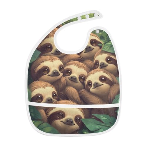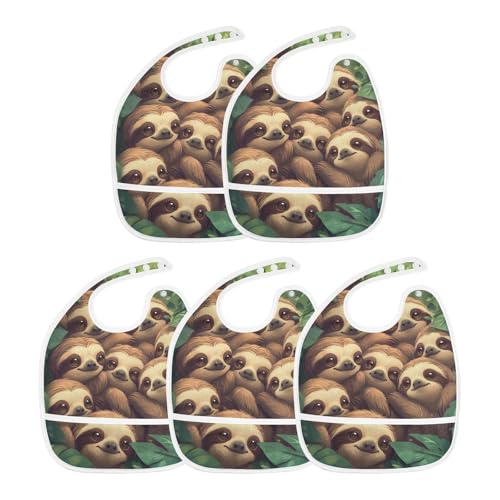 MCHIVER Sloth Tropical Green Baby Bibs for tag1 Waterproof Feeding Bib Apron with Food Cather Adjustable Cotton Food Eating Bib 2 Pack 5