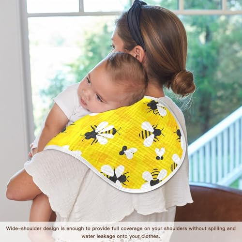 2 Pack Muslin Burp Cloths Bee Yellow Cotton Baby Burp Cloths Ultra Absorbent and Soft Burping Cloth for Newborn Boys Girls, Large 22" x 11" 6