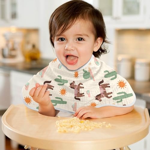 J JOYSAY Western Cactus Horse Beige Baby Burp Cloths for Boys Girls Large 22''x11'' Cotton 4 Layer Spit Up Burp Rags for Baby Sensitive Skin one sizex2 6